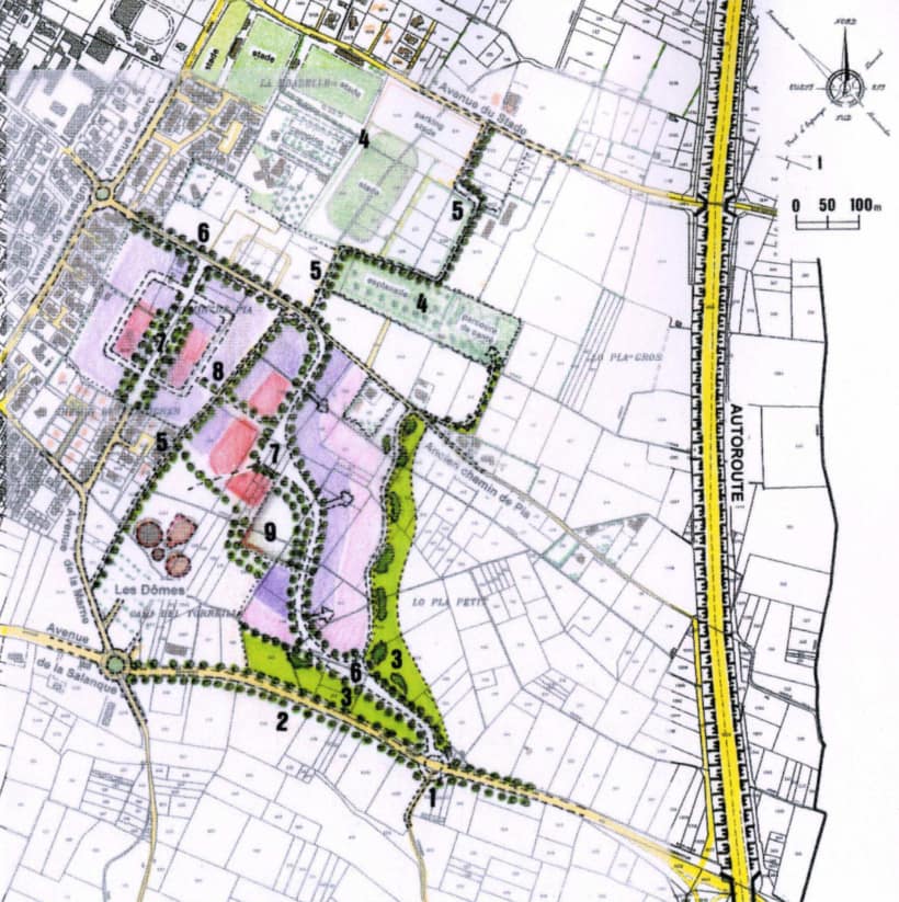Depuis les dernières élections, la majorité parle d’installer un nouveau groupe scolaire sur la commune. Le lieu initialement choisi était sur le secteur du Pla Petit (Chiffre 9 sur l’image ci-dessous), en face de la nouvelle gendarmerie, derrière les dômes, pour venir en appui du nouveau lotissement « Plein Soleil ». Ce lotissement, d’une superficie de 4,9 hectares, serait composé de 79 logements sous la forme d’une programmation mixte de 59 logements individuels et 20 collectifs. Il fait déjà l’objet d’une concession d’aménagement ouverte aux marchés publics: