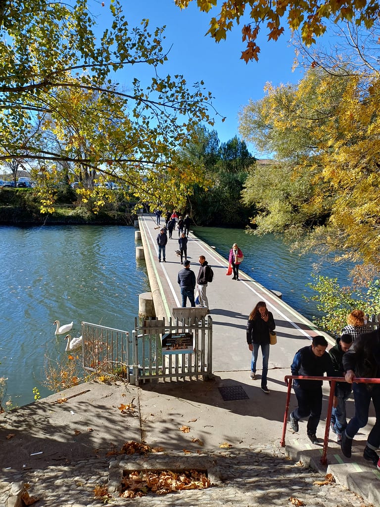 Exemple de gué piéton à Sommières (30-Gard), sur une rivière bien plus inondable que l’Agly: le Vidourle